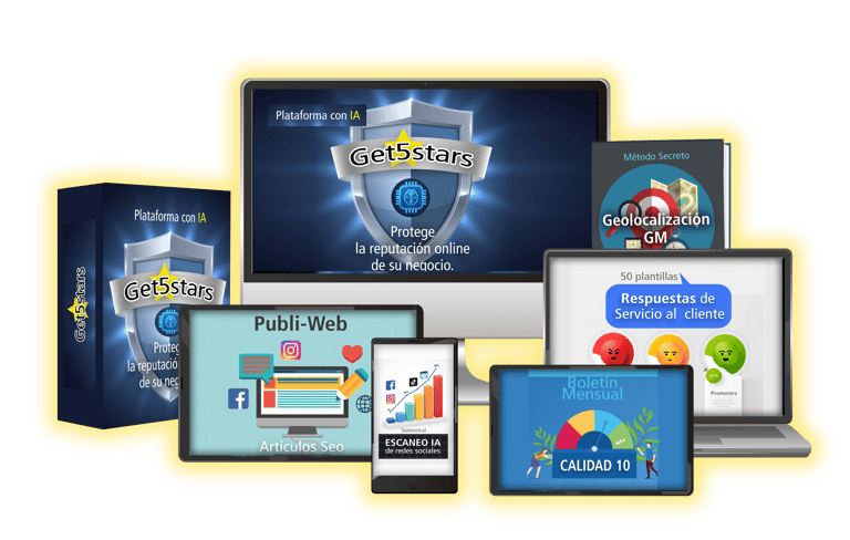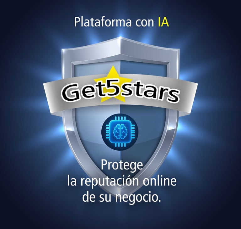 Get5stars es una plataforma online con inteligencia artificial que hace todo por ti, para proteger la reputación online de tu negocio y tú disfrutes de tranquilidad.